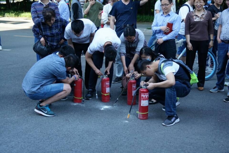 材料学院领导及全体导师教授以及研究生参加了本次演练活动,演练前由保卫办凌美波老师讲解了有关火灾现场的应急处置方案,灭火器的原理、基本操作方法及注意事项。
