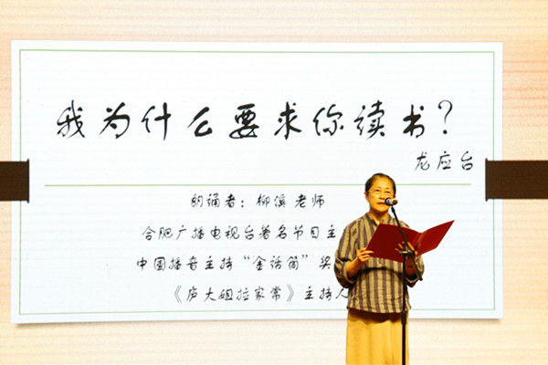 在名人家书品读环节,三名同学声情并茂地为全场师生带来《林则徐家书》《冰心家书》与《胡适家书》选段的品读。合肥广播电视台著名节目主持人、中国播音主持“金话筒”奖获得者柳溪老师与合肥广播电视台播音员管理部主任、《合肥新闻联播》主播王健老师分别品读分享了《龙应台家书》《闻一多家书》节选。在品读亲情环节,材料学院孟令孜同学和她的父亲分享了来往的书信,传达了学生与父母间浓郁的亲情。书信中平淡的语言、真实的情感、殷切的期望、谆谆的告诫感动了全场的观众。在品读师恩环节,材料学院毕业班庞景宇同学在《写给老徐的信》中表达了自己对徐光青老师的感激与爱戴之情。